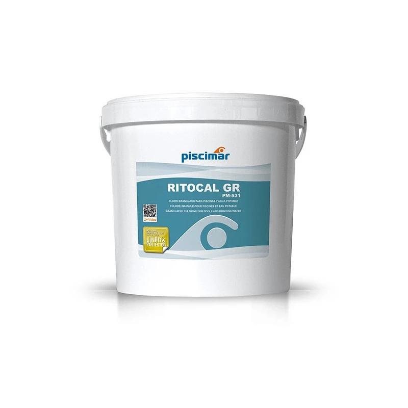 Le Ritocal GR est un produit granulé indiqué pour le traitement choc des piscines avec un niveau de stabilisant élevé. Produit de qualité contenant au moins 70% de chlore actif et homologué pour la désinfection des eaux destinées à la consommation humaine.