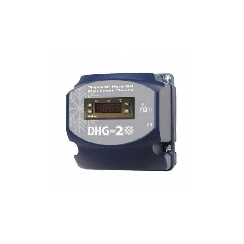 Le coffret Hors Gel DHG-2 est doté d’un affichage digital simple d’utilisation qui vous permet de programmer le seuil de température afin de déclencher la marche forcée de la pompe. La sonde du coffret DHG-2 peut être installée à l’intérieur ou à l’extérieur du local technique.