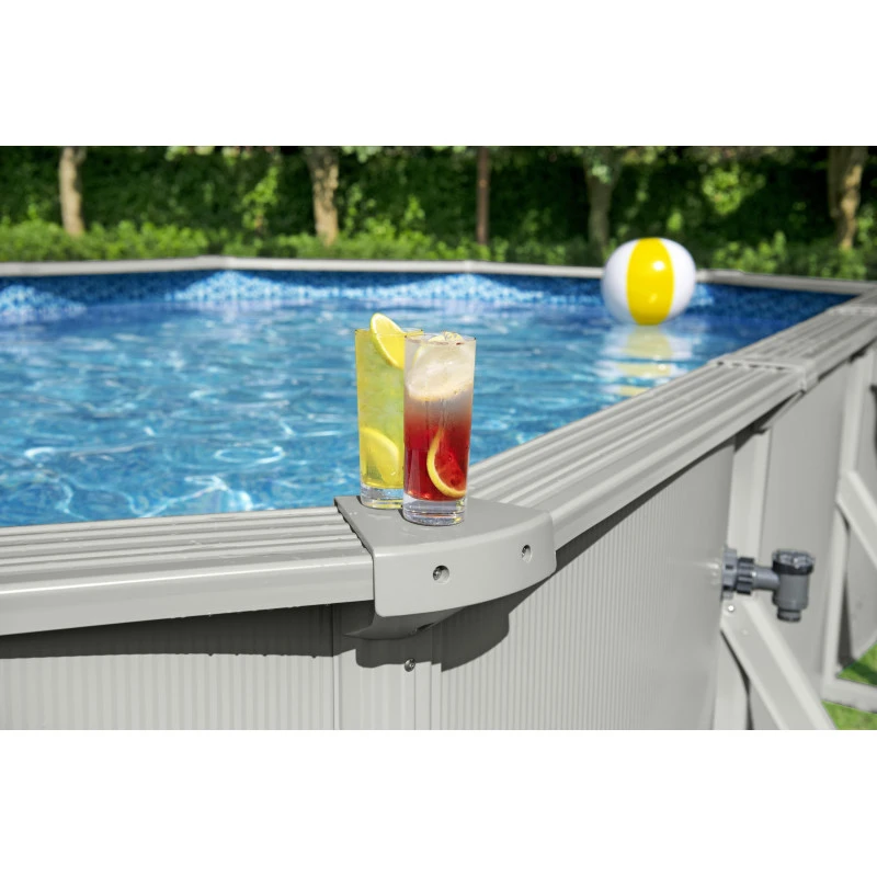 - Une piscine faite pour durer : Constituée d’une structure en acier renforcé, de renforts sur les flancs et petites margelles. Ce bassin peut traverser toutes les saisons.
