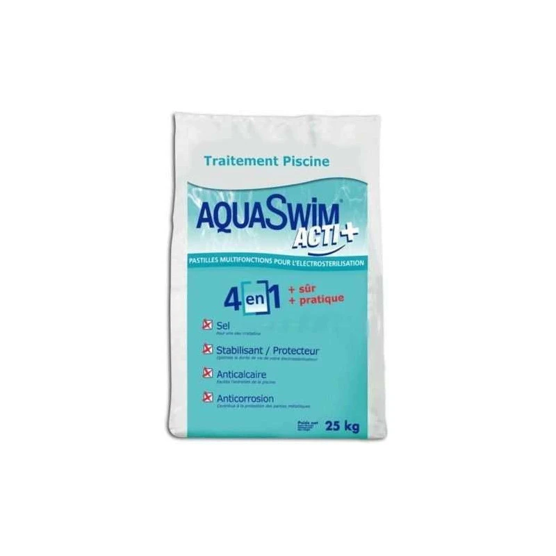 La pastille multifonctions qui simplifie l’entretien de la piscine. Conçue par le département Recherche et Développement du Groupe Salins, la pastille multifonctions AquaSwim Acti+ est tout simplement plus sûre et plus pratique car elle combine la plupart des produits nécessaires à l’entretien d’une piscine traitée par électro-stérilisation.