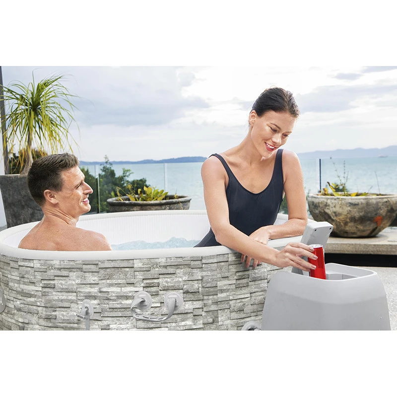 Équipé de la fonction Smart hub, vous aurez la possibilité de commander votre bloc filtrant via votre smartphone. Ainsi, allongé dans votre canapé, lors d’un diner entre amis, vous aurez la chance de réguler la température de l’eau, agir sur le temps de filtration ou commander la fonction massage. La fonction Smart hub est un vrai avantage qui permet de profiter de son spa sans trop consommer!