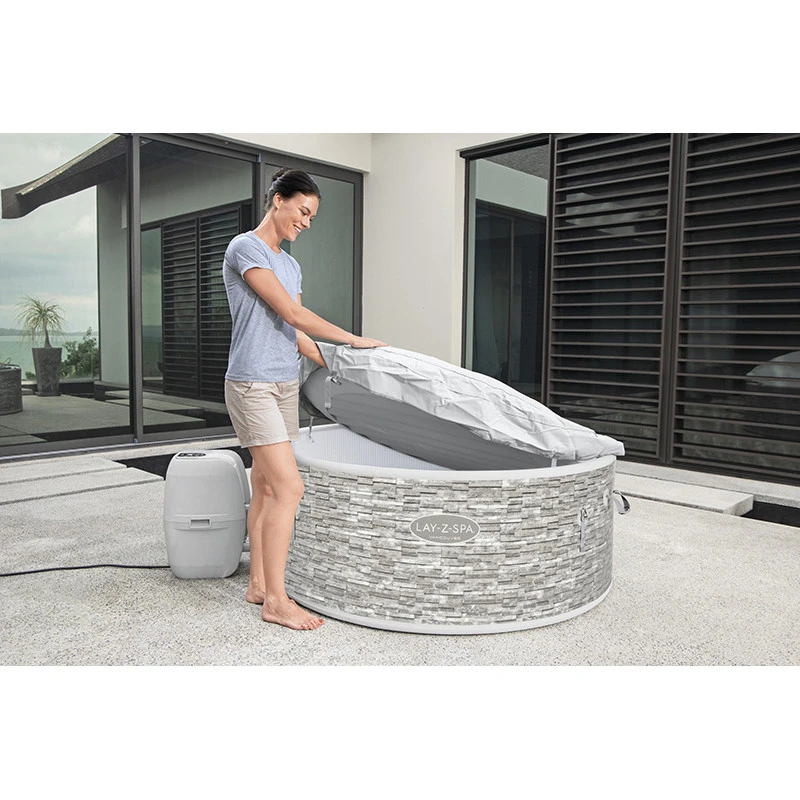 Le spa gonflable Lay-z Vancouver est un modèle design, de haute qualité fabriqué par le leader du spa gonflable. Le modèle Vancouver imaginé par Bestway est très moderne. En effet celui-ci est proposé avec un motif extérieur imitation pierres. La structure en Drop Stitch très résistante offre une durabilité inégalée. Des milliers de fils fins relient solidement les parois qui se scellent à l’air pour maintenir le spa gonflé. Les parois très fines permettent de gagner en surface de nage contrairement aux autres spas gonflables classiques. Le fond mousse est un atout supplémentaire de ce modèle qui confère une assise confortable pour une séance de détente optimale.